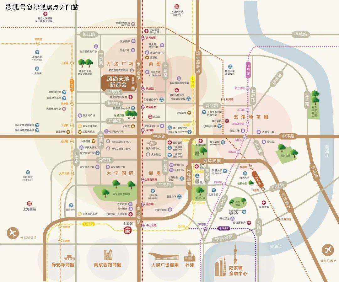 南靠大宁商圈、久光百货、人民广场繁华闹市,东靠五角场商圈