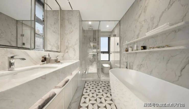 此外,室内还大量运用雅士白大理石、大花白岩板、皇家孔雀岩板、水纹夹丝玻璃、仿洞石岩板、卡拉卡塔白岩板、灰色皮革等定制材质,以华润置地独有的“五奢体系”,彰显着对高品质生活的极致追求。
