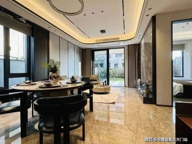 项目打造新中式立面风格,别墅1-3层、洋房1-2层采用来自巴西的维多利亚白天然石材干挂,营造高级、大气的建筑气质。