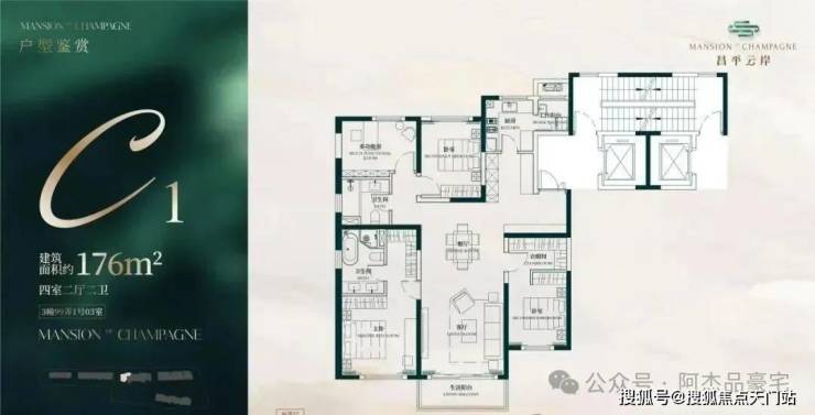建面约176㎡4房2厅2卫户型