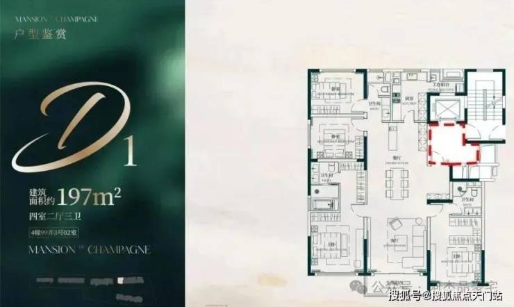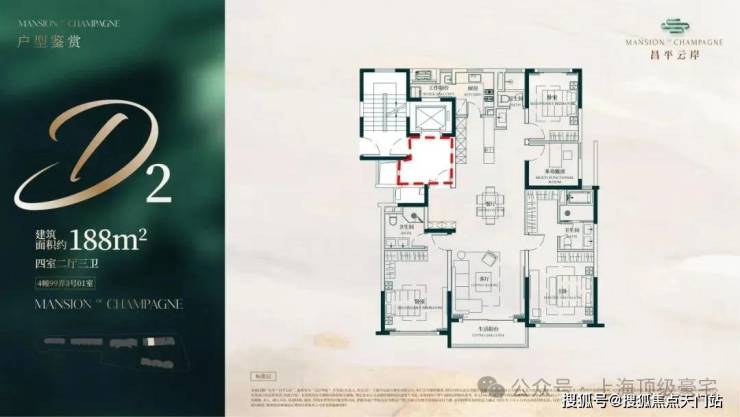 此户型最靠近苏州河,特地设计了 270度转角阳台 直面苏河一线景观!4个套房设计,尊崇感十足!此户型仅有6套,珍藏属性拉满!
