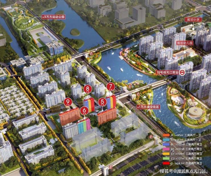 这座百万方滨水TOD大城,以15号线元江路地铁站点为核,从莲花南路到都会路整合片区,涵盖7大业态,约百万方大体量: