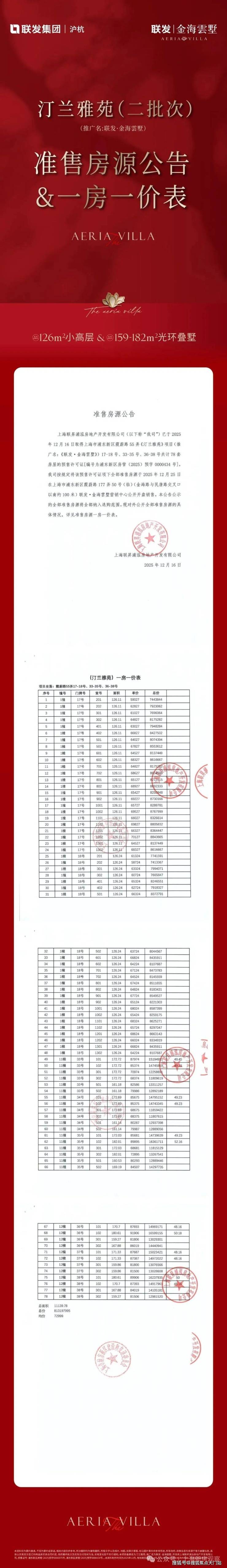 金桥之上【金海雲墅】加推约112-181㎡小高层及叠墅;上期均价68888元/㎡!