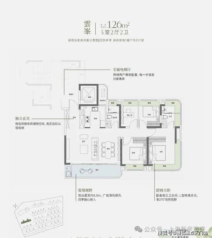 建面约168㎡三面宽上叠样板间展示: