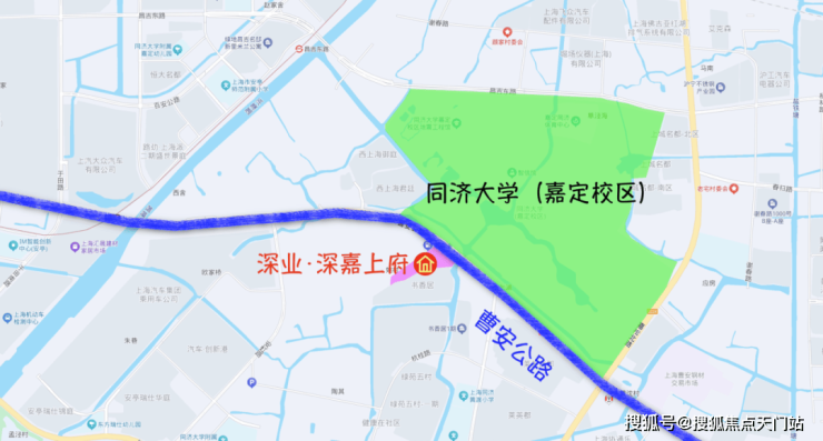 深业深嘉上府位于安亭黄渡,紧邻曹安公路, 正对同济大学嘉定校区,拥有汽车产业相关的12个学院, 整体产业发展有一定潜力,未来也不缺流动性。