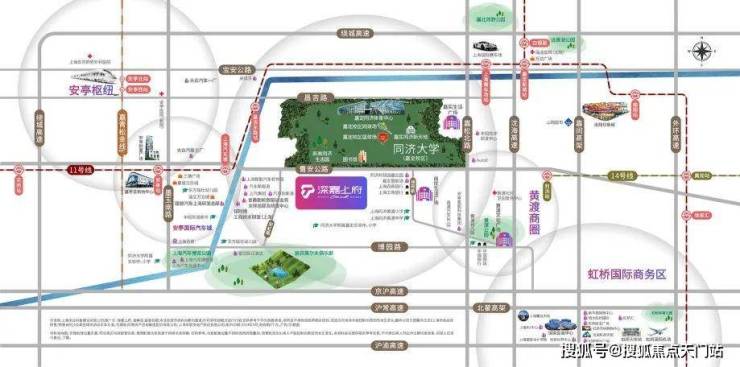 交通方面,深嘉上府距离11号线昌吉东路站直线距离约1.3公里,距离规划中的地铁14号线西延伸线同济大学站直线约300米,沿着曹安公路5分钟可以上京沪高速,从而快速通向市区。