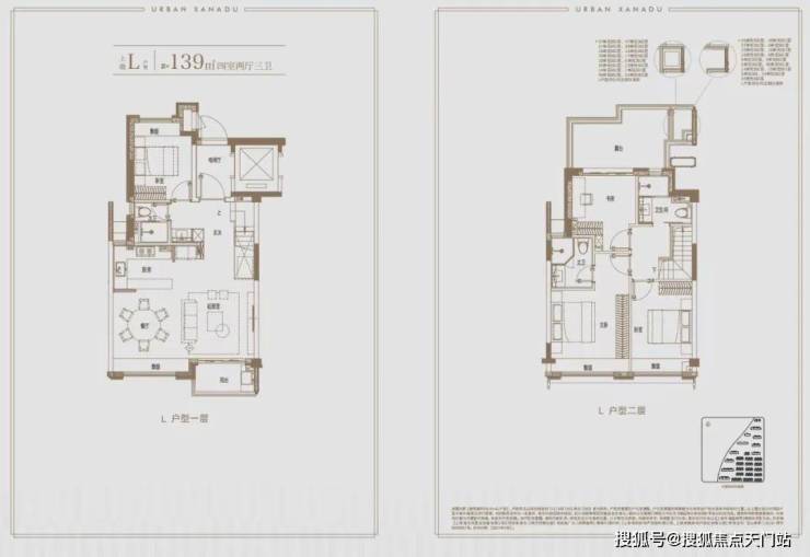 建面约139㎡上叠户型,三层是会客区,四层是居住区,阳台+露台+多个飘窗设计,附加空间非常大,在别墅类产品中实属罕见!