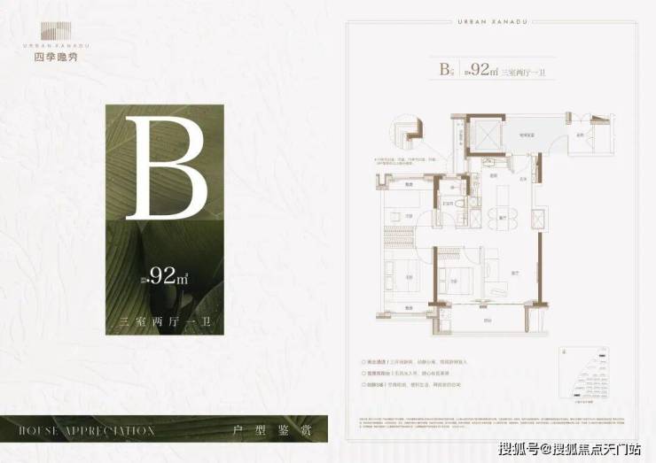 我们重点来看主力的建面约105㎡3房2卫户型: