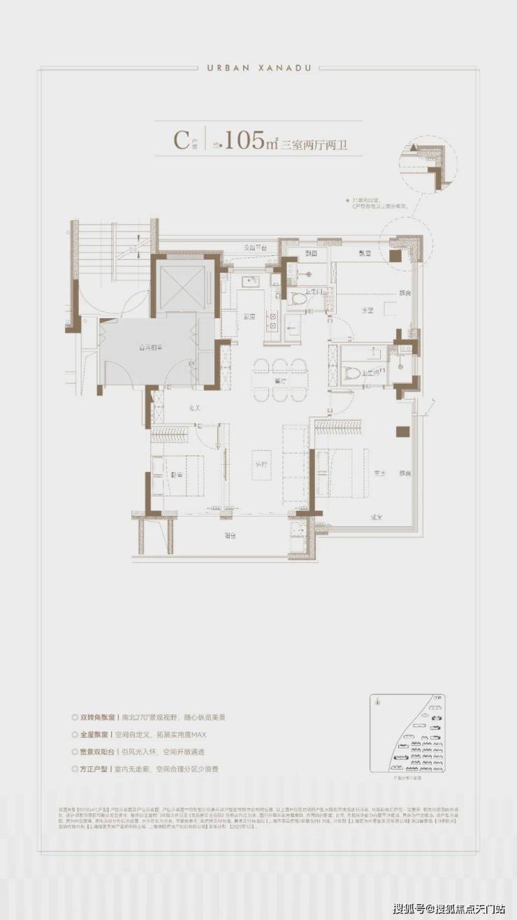 另外,项目还有建面约105㎡3房2卫明星户型,设计更为亮眼。