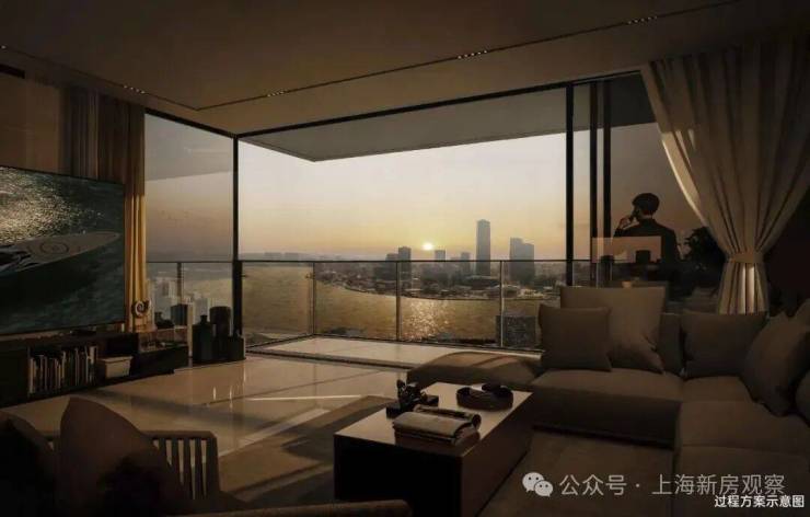 项目通过转角楼栋、大面积落地窗、隔音降噪技术,构建“全明江景视野”系统。