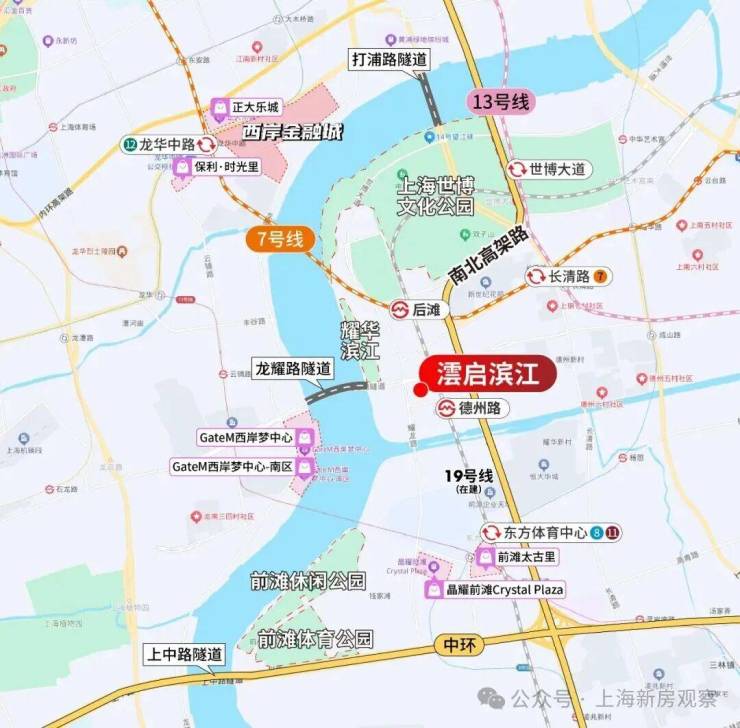 交通方面:原有7号线后滩站,串联徐汇滨江、静安寺等核心商圈,但相对来讲,站点近后滩商办,离九宫格略远;