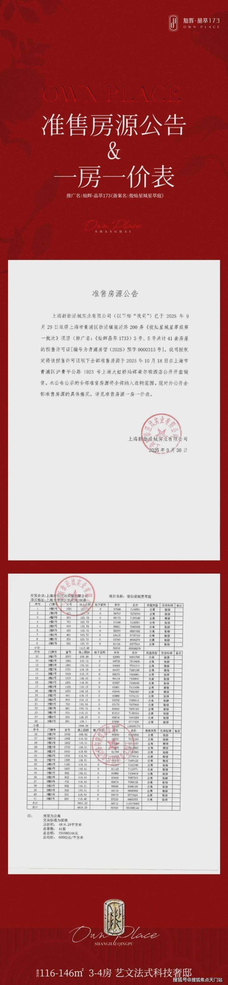 #一房一价表出炉!大虹桥徐泾热盘「灿辉晶萃 173」10.7 认购,建面 106-124㎡三房,均价 6.05 万 /㎡!