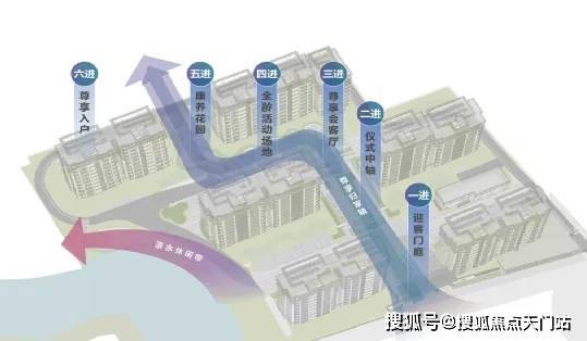 祥源·溪悦近享河景,容积率仅约1.6,打造清一色8-10层的水岸花园洋房,社区内打造“一带六进”微度假景观布局,全方位涵盖业主的社交空间、老人休闲、青年运动、儿童游乐。入口的昭示门庭、水韵照壁,带来尊崇归家礼仪;