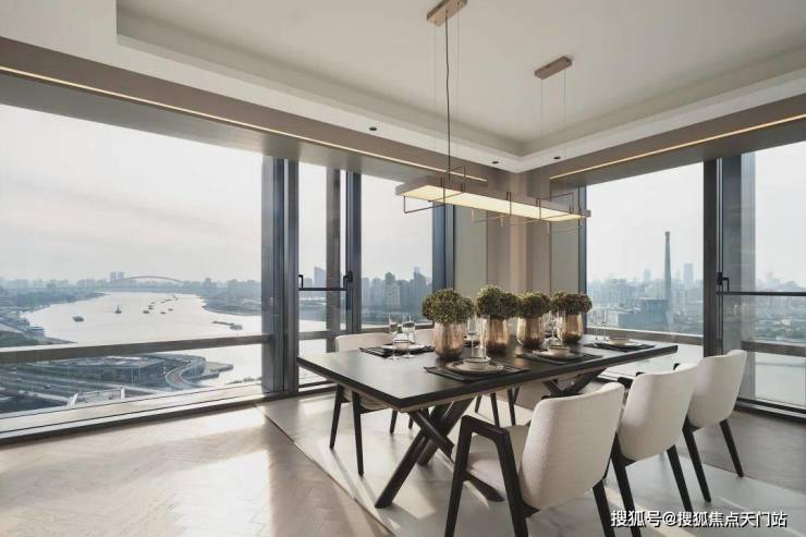 ·建面约240㎡边套,采用L型转角落地窗,打造了 270°环幕瞰江视野,无论身处客厅、餐厅,都能以不同角度眺望黄浦江的波光粼粼。