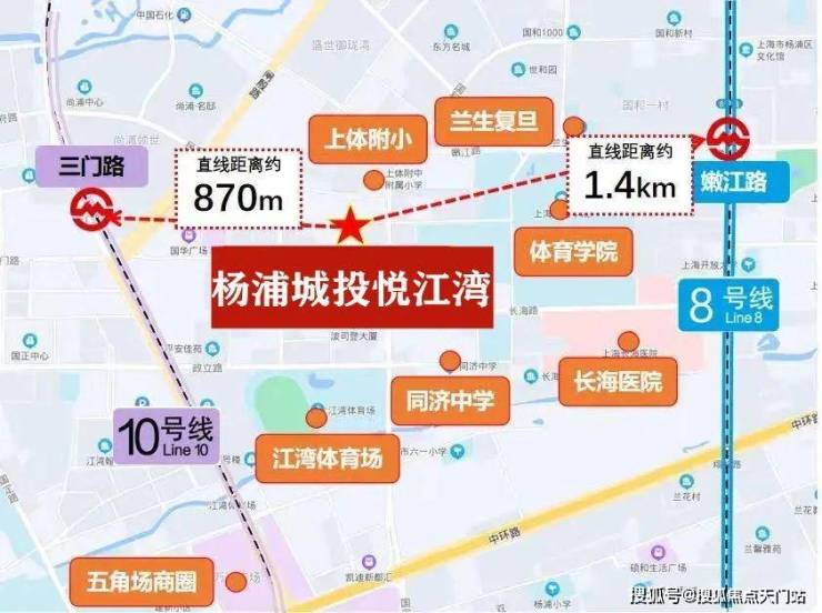 交通方面:双轨环绕,项目距离到10号线三门路站直线约870米,8号线嫩江路站直线距离约1.4公里,