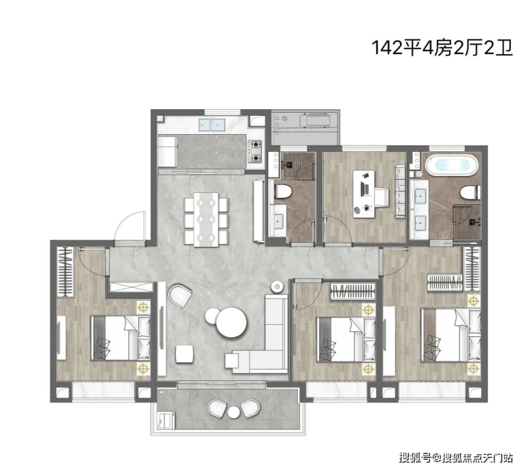 奢阔主卧套房,面宽和进深都很充裕,为每一个生活场景预留了足够的空间,可打造衣帽间,舒适感和品质感双重加持。