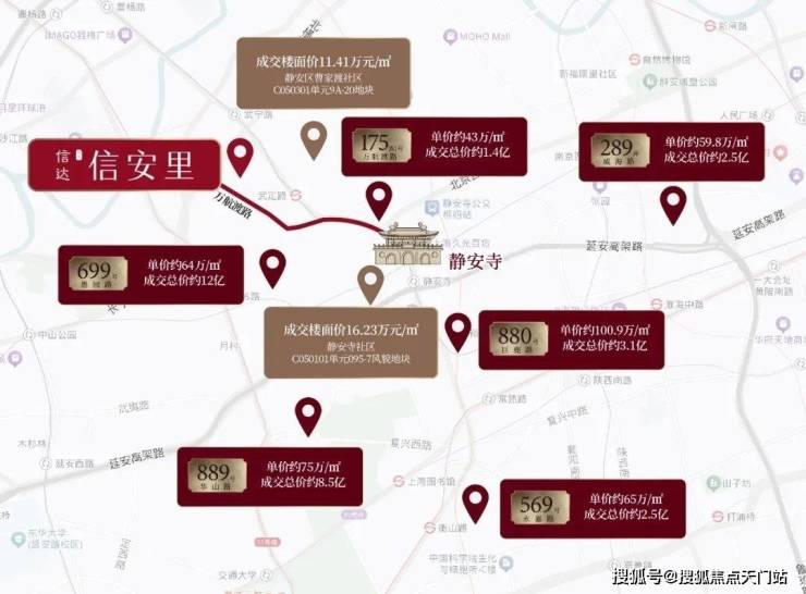 巨鹿路880号,成交单价约100.9万/㎡;万航渡路175弄·静园壹号,成交单价约43万/㎡;愚园路699号·严家花园,成交单价约64万/㎡;华山路889号,成交单价约75万/㎡。