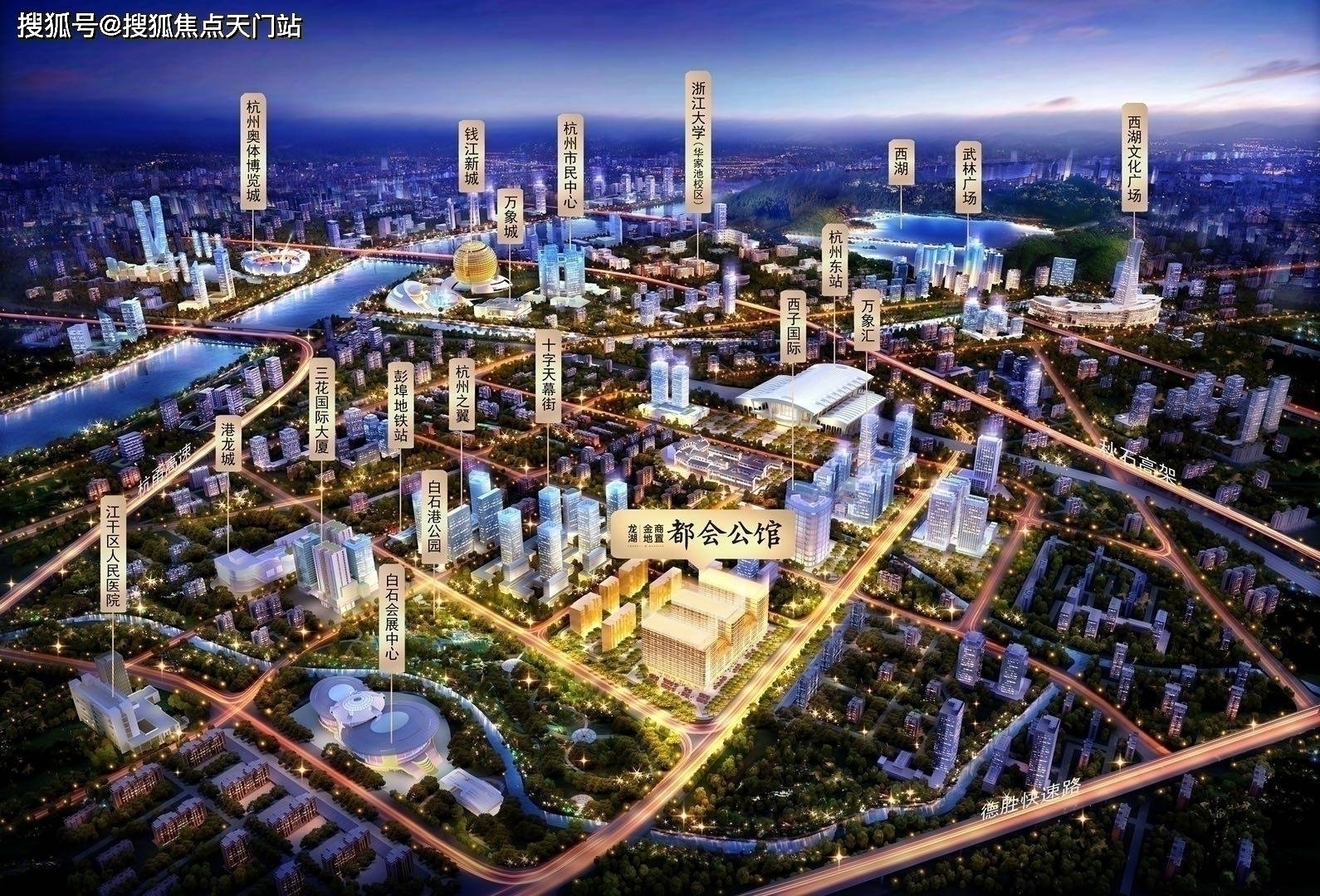 在“城市东扩”、“拥江发展”双轮驱动下,站在东扩排名前列站的城东新城,将打造成为比肩上海虹桥的“国际枢纽商务区”。建立以火车东站为核心,集交通、商务商业、教育、公园为一体的“杭州枢纽商务中心”。
