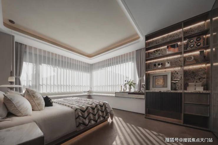 在传统的四房领域,2房朝北几乎是逃不掉的问题,但在招商中旅·观境,做到了三间卧室朝南,并且主卧拥有一个约270度的主卧无柱转角飘窗。