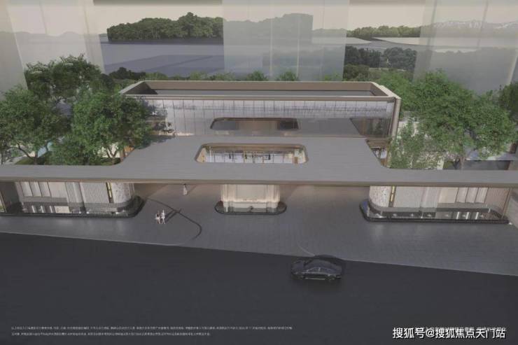 还有社区门庭悬浮的⽔晶礼盒,⽤纯粹的玻璃BOX打造时尚的城市界⾯。