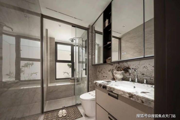 除了户型尺度,招商序的展示空间用料也是在700万这个量级难逢敌手,整个展示空间,除了卧室的拼花地板,其他区域的地面与墙面几乎全是岩板与奢石。连卫生间墙面都做到了岩板通铺....这种用料一般只有千万级的豪宅才能看到,114的客厅背景墙也采用了天然大理石搭配岩板交付,岩板因工艺复杂、性能优异,多用于高端场景,招商序厨房、 卫生间墙面地面,客餐厅地面连通阳台,全部通铺岩板,可见硬装投入度之高。