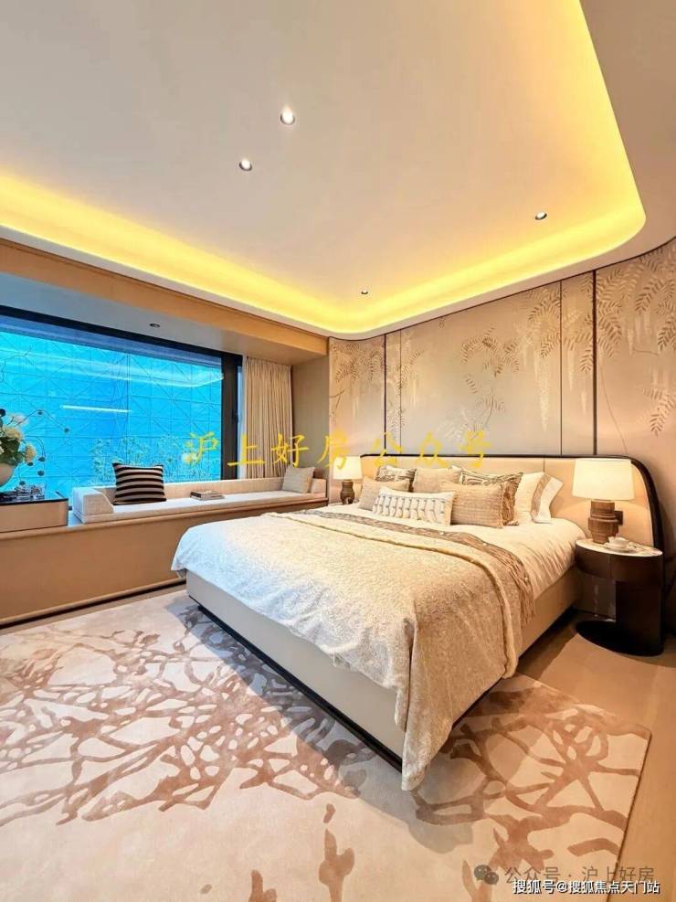 主卧拥有270度环幕飘窗,视野和采光优越,配备了高奢卫生间,空间感、尊崇感拉到顶格。