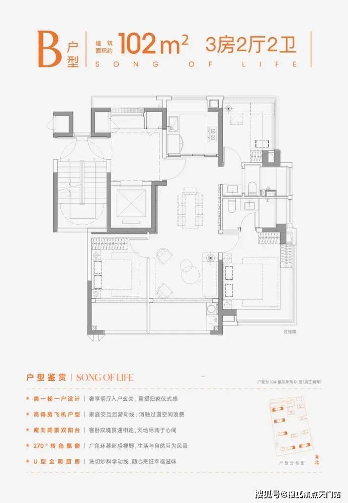 飞机户型格局,真南北通透,无过道浪费面积,三卧相对独立有各自隐私空间。