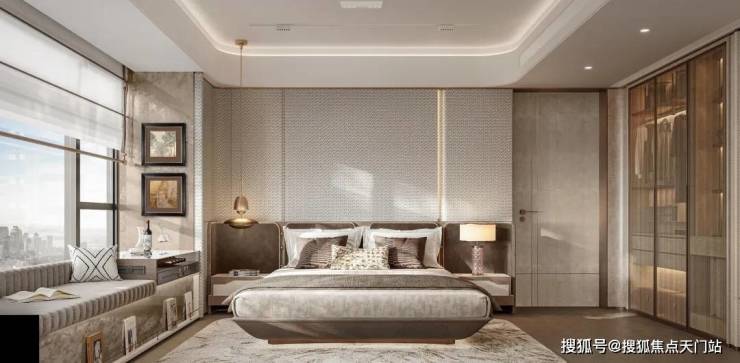 主卧与北向卧室均配置约270°转角飘窗,让室内空间进一步放大;