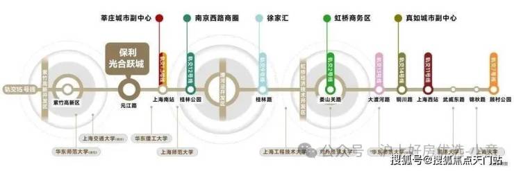 保利·光合跃城依托TOD15号线上盖的交通优势,5站徐汇,9站前滩,3个红绿灯上中环,通勤效率大幅增加。作为上海科创生命线,途径9所大学10个校区、3个国家级科创园区(紫竹国家高新区、漕河泾经济技术开发区、虹桥经济技术开发区)、真如城市副中心、上海南站+上海西站2大火车站,极大程度地加强城市西部内外环线之间的交通能力、带动沿线区域发展!