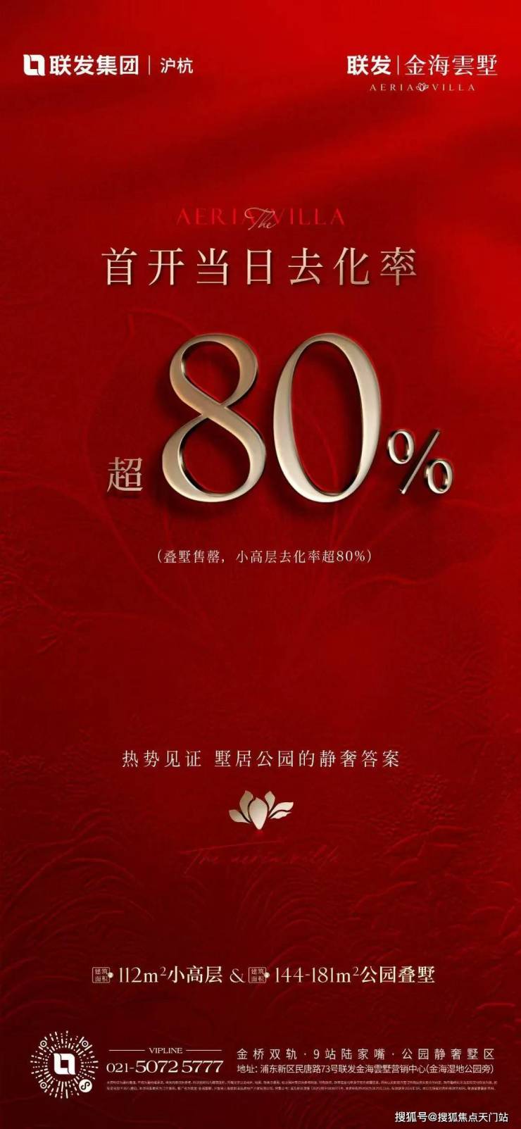 11月27日,联发金海雲墅开盘,官宣叠墅售整,小高层去化率超80%。