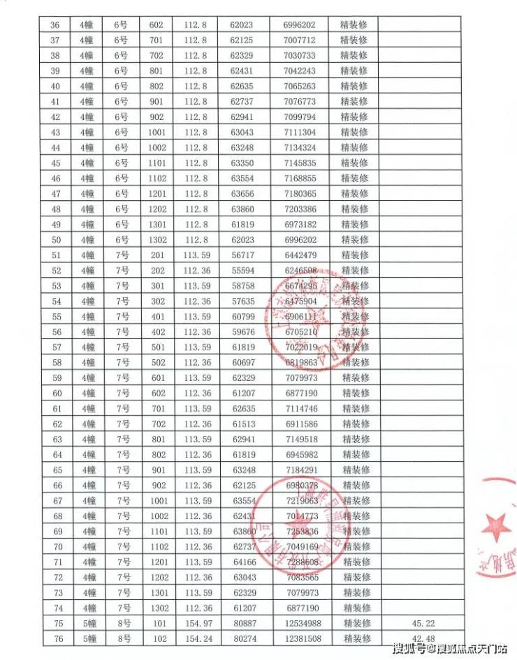 附一期全套一房一价表: