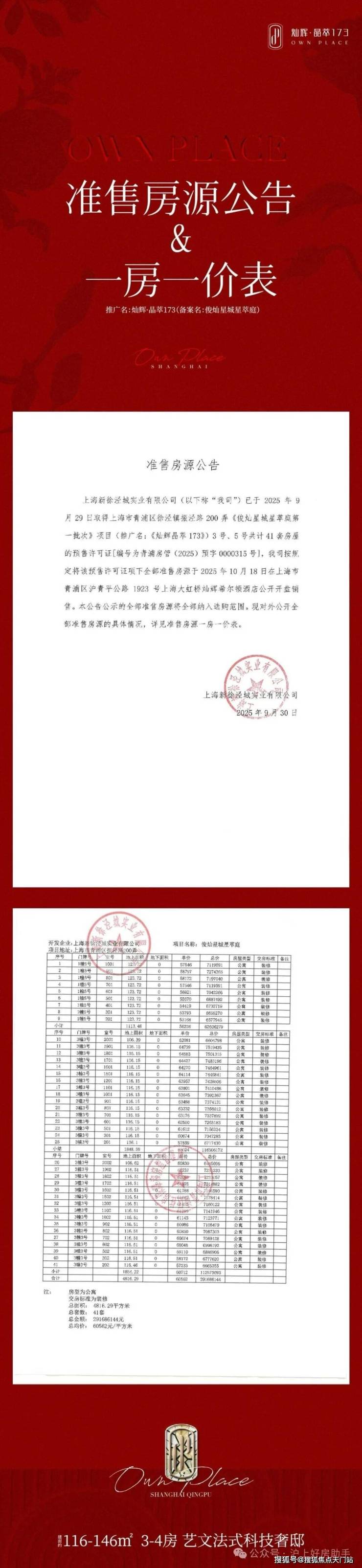 据悉:【灿辉·晶萃173】,已过会,均价6.05万/㎡,将推115-146㎡3-4房!项目共计173户,首发共41套房源。总价约650万起!正在认购中!