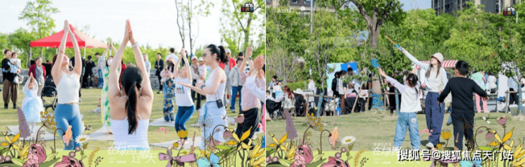 正值大华集团光年社社群成立1周年之际,4月26日,大华公园柏翠联动蔚来汽车、一水瑜伽等知名品牌,在项目西侧的康宁绿地一期,联合举办了以公园、露营、瑜伽、亲子游戏为主题的大型光年社活动——AURA PARK「青春生活节」,让业主提前享受家门口的公园生活。