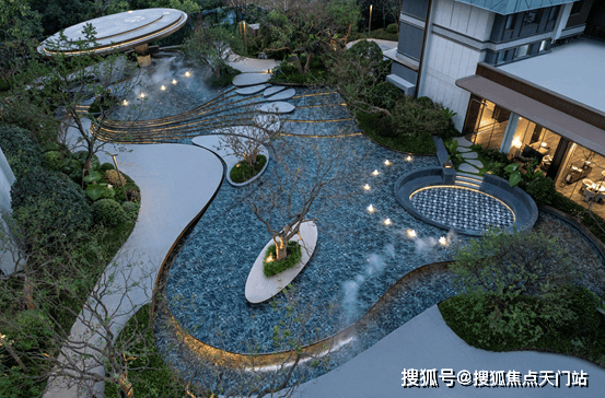环形水系蜿蜒楼宇之间,叠瀑、镜池、汀步错落交织,搭配全龄主题花园与四季植被剧场,让回家成为穿越森林、踏水而行的诗意旅程。