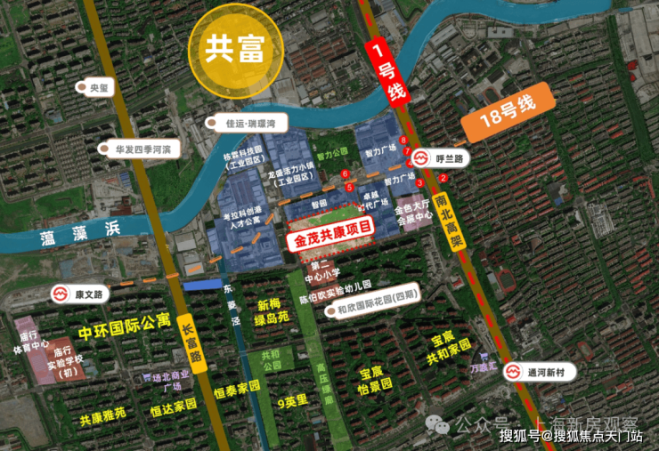 地块紧邻轨交1号线呼兰路站,距离仅约0.5公里,轨交通勤20分钟内可达人民广场。 在建18号线直达新江湾、杨浦滨江和陆家嘴,预计今年底就能通车!这使得该区域成为连接市中心与宝山区的重要节点。