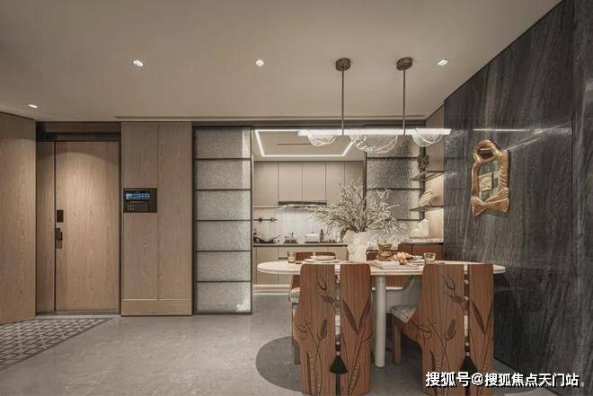 墙面,严选安第斯雪或晓山青珍贵石材,与木饰面、特色定制墙布组合设计;客厅、餐厅、卫生间等区域地面定制石材,赤足走过,温润细腻的触感。