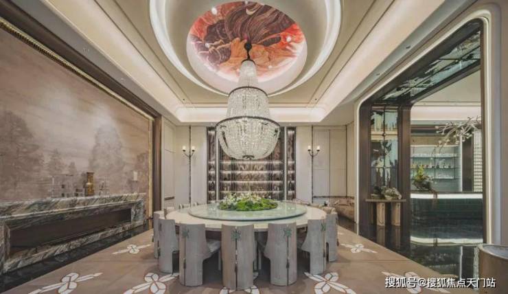 进门之后,恍若走进一幅立体绽放的画卷。地面采用了石材拼花,纹理如行云流水般舒展,在光影交错间勾勒出 低调的奢华。