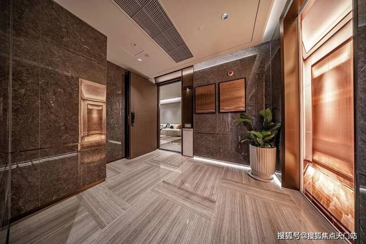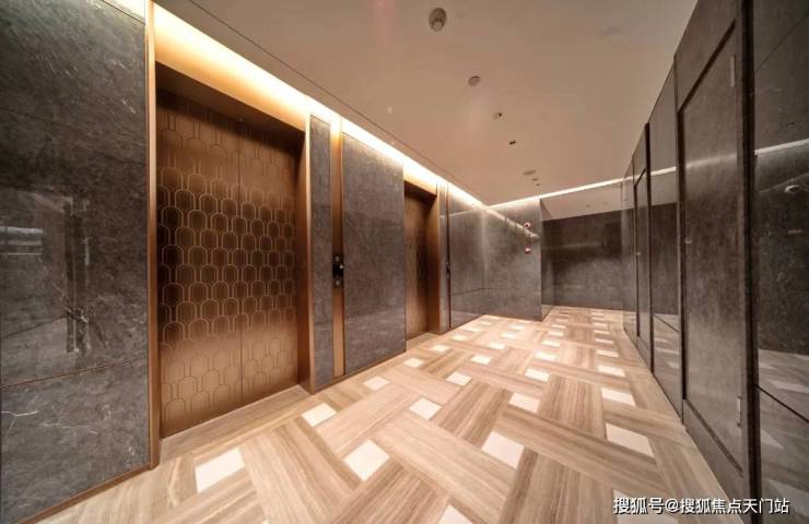 更值得一提的是,项目打造的电梯轿厢都比一般的电梯高,空间感打造上相当出彩,搭配无主灯悬浮吊顶与金属墙面设计,海派归家仪式感拉满!