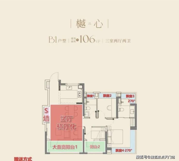 3、高层户型阶梯递进,赠送面积拉低准入门槛。