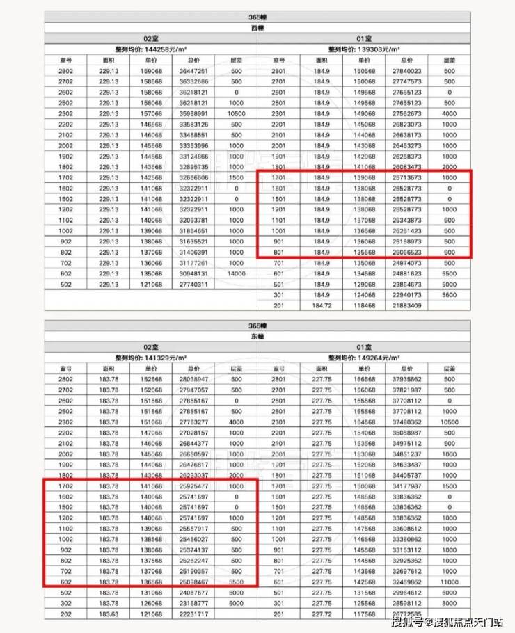 注意看价格表,2500万是项目建面约185㎡的主力价格段,买的都是中间楼层,并非低区。228㎡户型最贵3794万,4千万以内的预算真的是随便选!