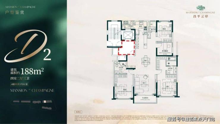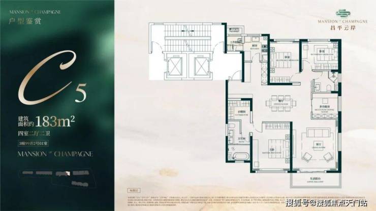 此户型最靠近苏州河,特地设计了270度转角阳台直面苏河一线景观!4个套房设计,尊崇感十足!此户型仅有6套,珍藏属性拉满!