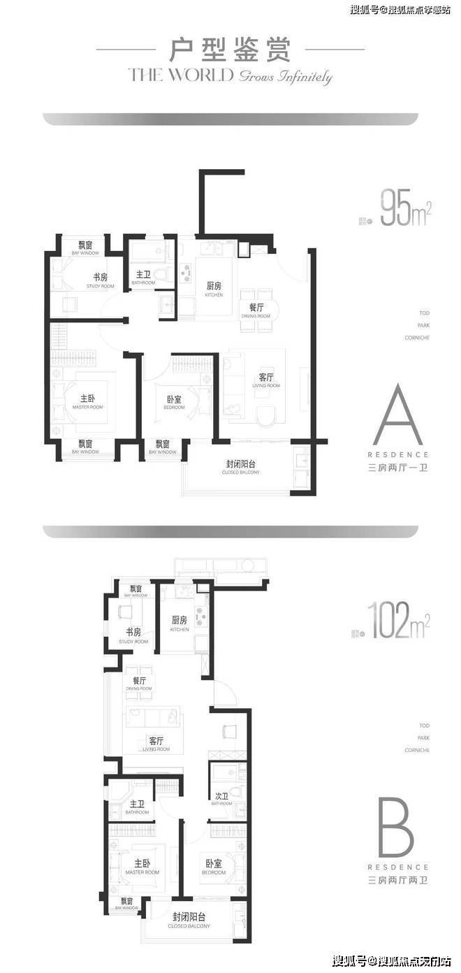 95㎡三房:U型厨房+南向双阳台,无连廊设计,得房率超78%。