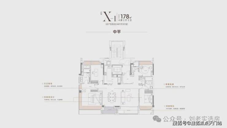 项目的中平 四开间朝南 ,超大IMAX的采光面,妥妥市区豪宅大平层的尺度感。