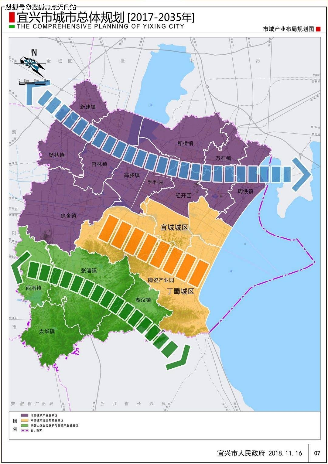 根据2017-2035年宜兴市政府规划,全市由北向南形成“城镇产业发展区、城市综合功能发展区、山区生态保护与旅游产业发展区”三大片区,促进“生产、生活、生态”功能协调发展。其中城镇发展区区域面积占据宜兴市50%,交通四通八达,产业链丰富,它作为宜兴经济产出最重要区域,是宜兴市积极融入长三角经济一体化中的经济桥头堡。