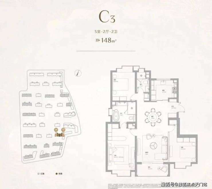项目一期房型均呈现大开间、短进深的特点,主力房型为131㎡3房,占到一期总量的70%,其余房型为100㎡2房,155㎡3房,175㎡4房。项目一期于2022年11月入市,推出621套房源(C区),总认购1400+组,认购率225%,入围分55.28,开盘售罄!