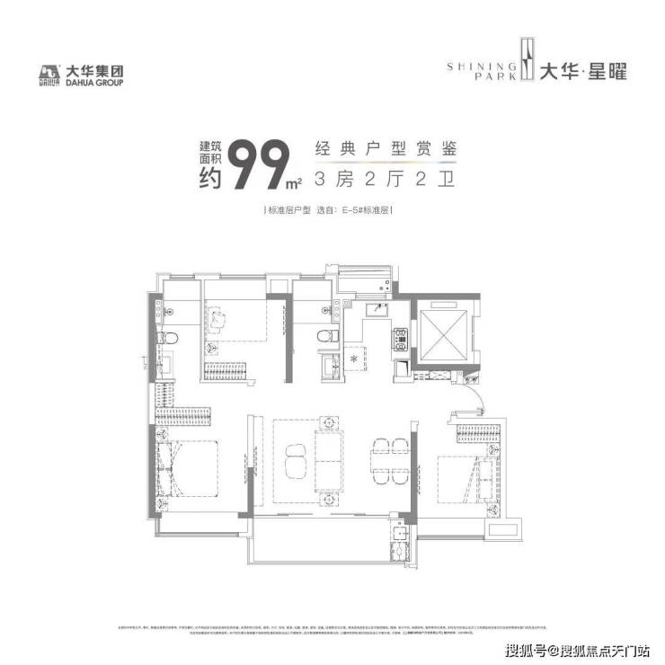 不同于市面上千篇一律的三房户型,项目建面约99㎡做了大横厅设计。三开间朝南+南北通透,采光面和通风条件非常棒!客餐厅LDKG一体化设计,拉伸空间尺度感,提升家庭成员之间的互动感。