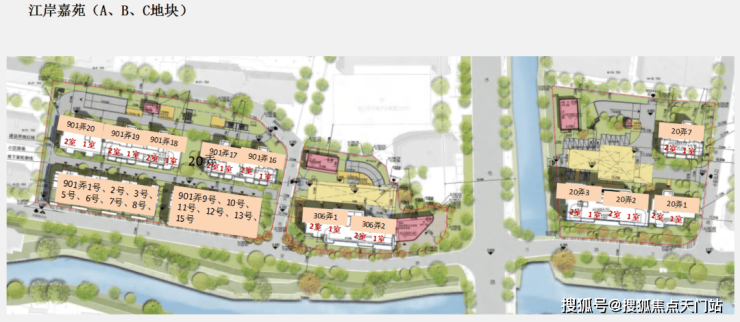 设计中将7个独立的地块与滨水空间相结合, 通过对商业、绿化、广场界面的有机穿插、整合成为一个与景观河道交相辉映、有节奏的公共长廊,提升滨水区域的环境品质。