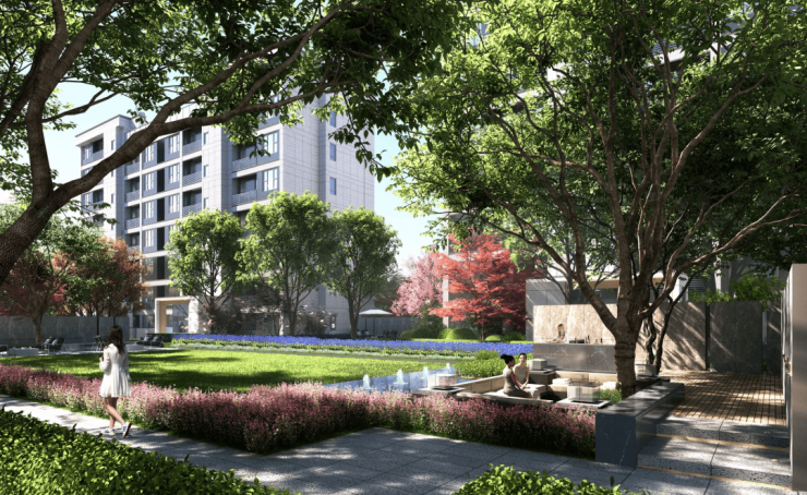 林荫景观带更让社区充斥着绿意,实现一步一景的效果,居住在绿意环绕中,隔绝喧嚣,让业主们纵享静谧生活。