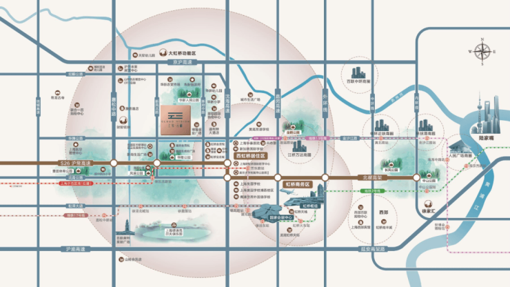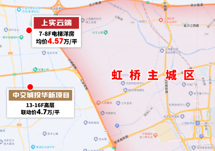 上实云端位于华新板块核心,与虹桥前湾地区核心直线距离不过2公里,与虹桥核心区直线距离不过8公里,可谓是近水楼台先得月。