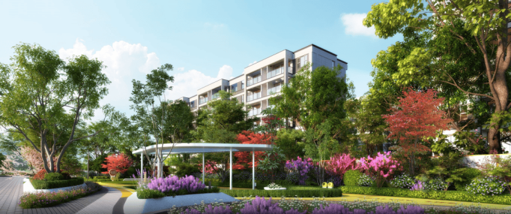 社区规划有四重生态境界,打造“四季有景,三季有花”的植物氛围。